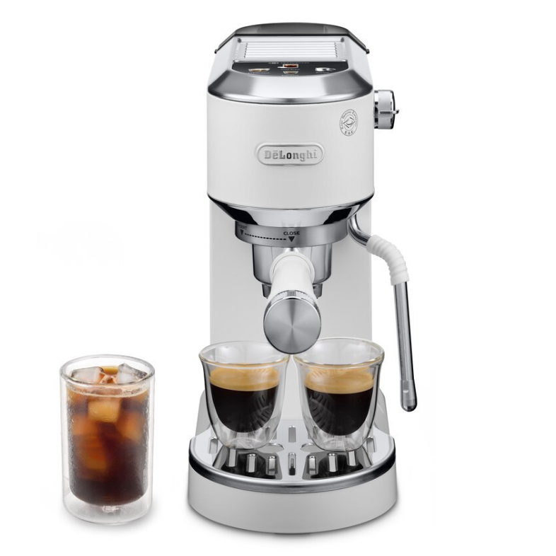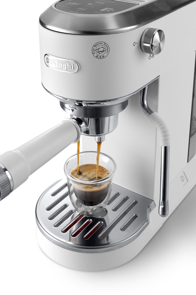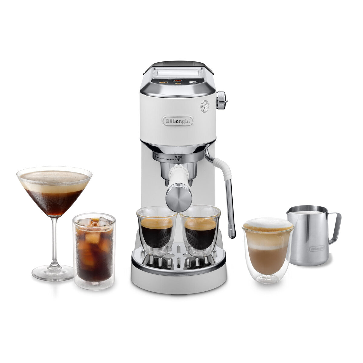 Domina el arte del espresso, el cappuccino y otras bebidas a base de leche y café en casa con Dedica Duo. Disfruta de un café caliente y frío, incluida la exclusiva receta Cold Brew, y dale a tus bebidas ese toque de barista con la varilla My LatteArt. Esta cafetera compacta se adapta a cualquier espacio, añadiendo a tu cocina un estilo italiano de forma sencilla.